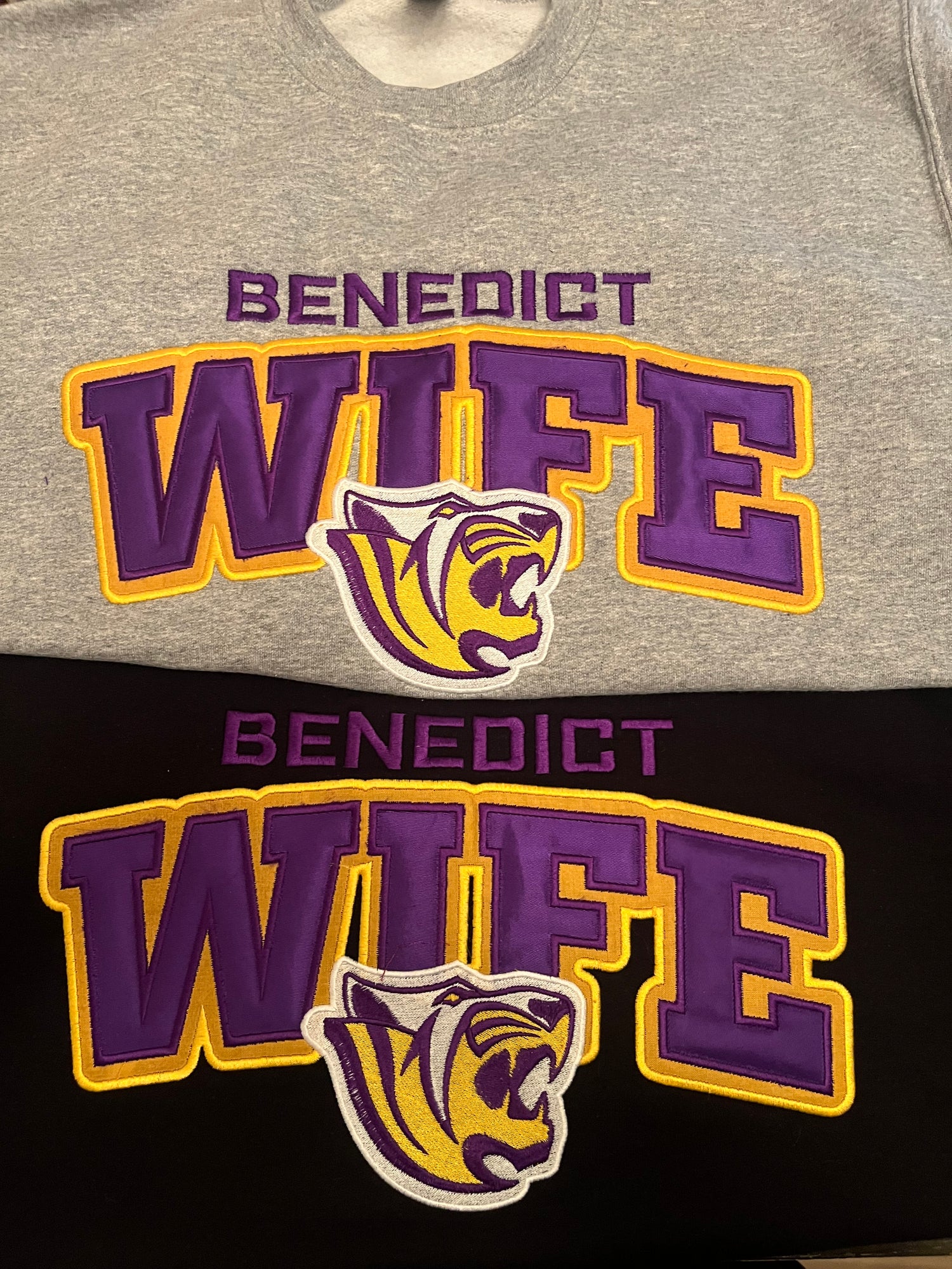 "Embrace your inner Benedict with our playful and stylish WIFE sweatshirt. Embroidered with love, this sweatshirt adds a touch of quirk to any outfit. Perfect for any fan of Benedict or just looking to make a statement, wear it and be the envy of all your friends. (Don't worry, we won't tell your husband!)"